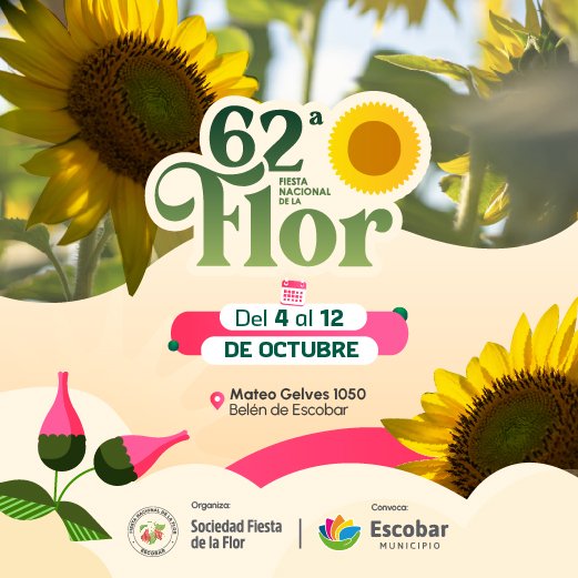 La 60° edición de la Fiesta Nacional de la Flor tendrá lugar en el Predio Floral (Mateo Gelves 1050, Belén de Escobar) del 30 de septiembre al 8 de octubre. El evento nucleará a cientos de viveros y productores de todo el país, habrá feria de emprendedoras y emprendedores, y la clásica elección de los embajadores y embajadoras del distrito, entre otros atractivos para toda la familia. Para más información se puede ingresar a www.fiestadelaflor.org.ar.